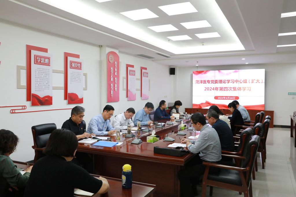 4月24日下午,我校在图书楼第一会议室举行党委理论学习中心组(扩大)2024年第4次集体学习。学校党委班子成员及二级部门党政负责人参加学习,党委书记袁志勇主持会议。