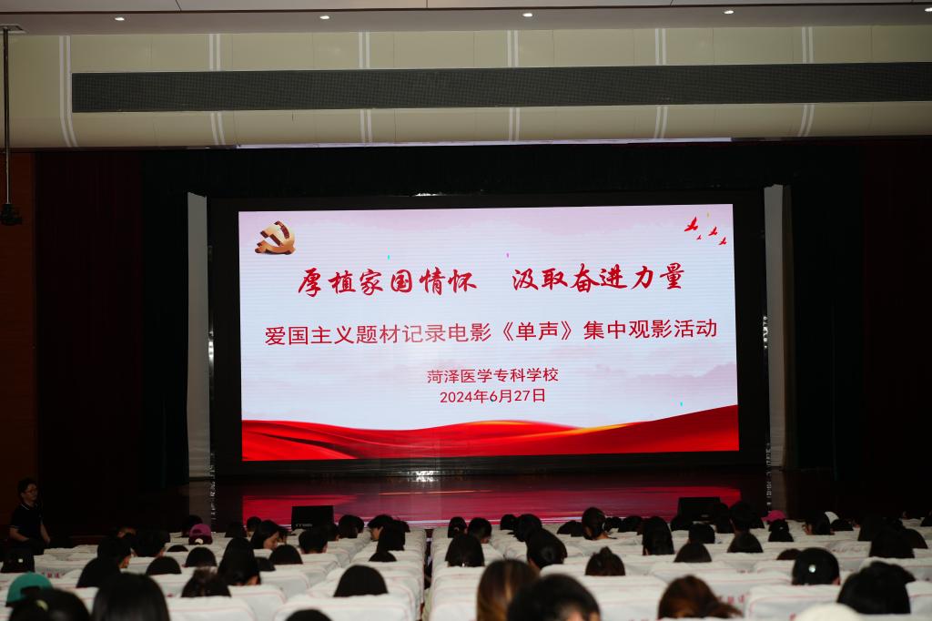 为深入学习贯彻习近平新时代中国特色社会主义思想,弘扬爱国主义精神,进一步增强学校广大师生的责任感和使命感,6月27日下午,我校在学术报告厅举办爱国主义题材纪录电影《单声》集中观影活动,全校教职工及学生入党积极分子观看电影。