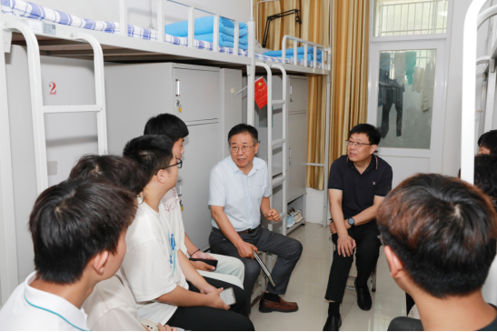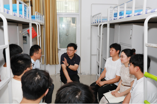 为贯彻落实我校领导干部深入基层联系班级、宿舍工作制度,建立与学生常态化互动交流机制,更好地关爱学生,解决学生思想、学习、生活等遇到的实际问题。6月27日下午,校党委书记袁志勇走进学校“一站式”学生社区8号公寓106宿舍,与同学们亲切交流,共话成长。校党委委员、副校长齐云飞,包联班级辅导员刘建海、杨珂参加座谈。