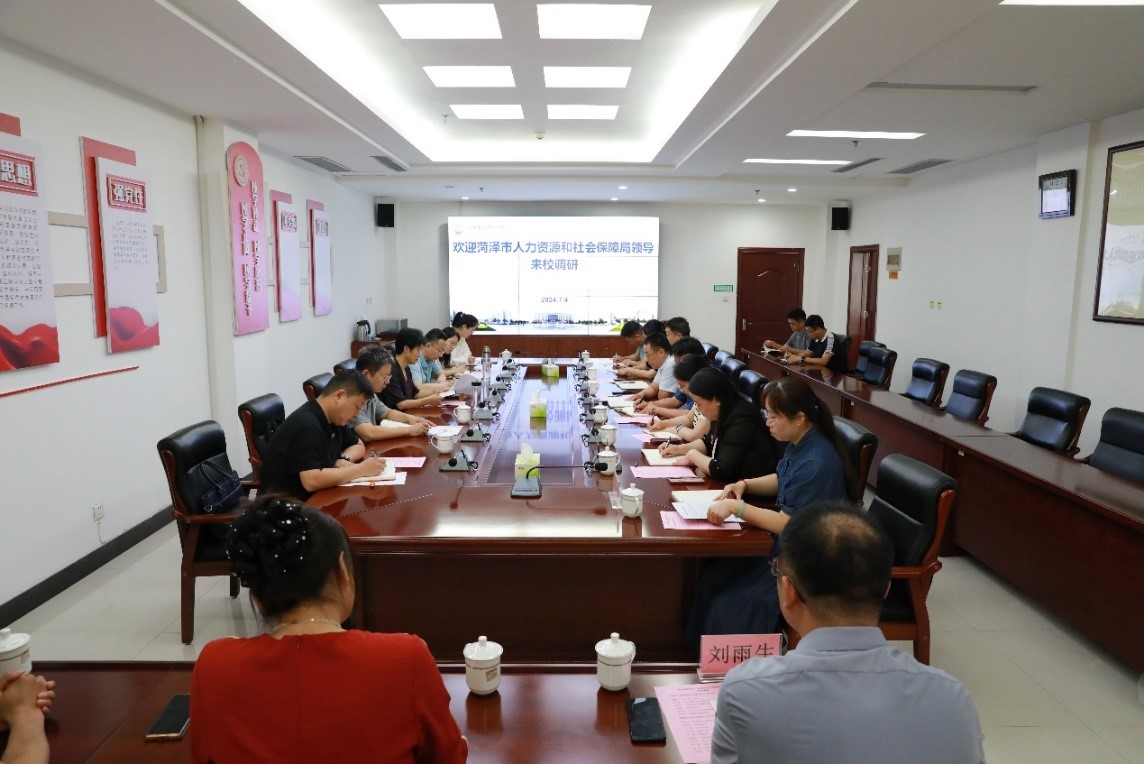 7月4日,菏泽市人力资源和社会保障局党组书记、局长梁惠民一行6人来我校进行调研。此次调研旨在搭建政校企三方合作平台,进一步促进毕业生高质量充分就业,更好的服务于菏泽市经济发展。校党委委员、副校长齐云飞,相关二级部门负责人参加会议。会议在图书楼六楼第一会议室举行,齐云飞主持会议。