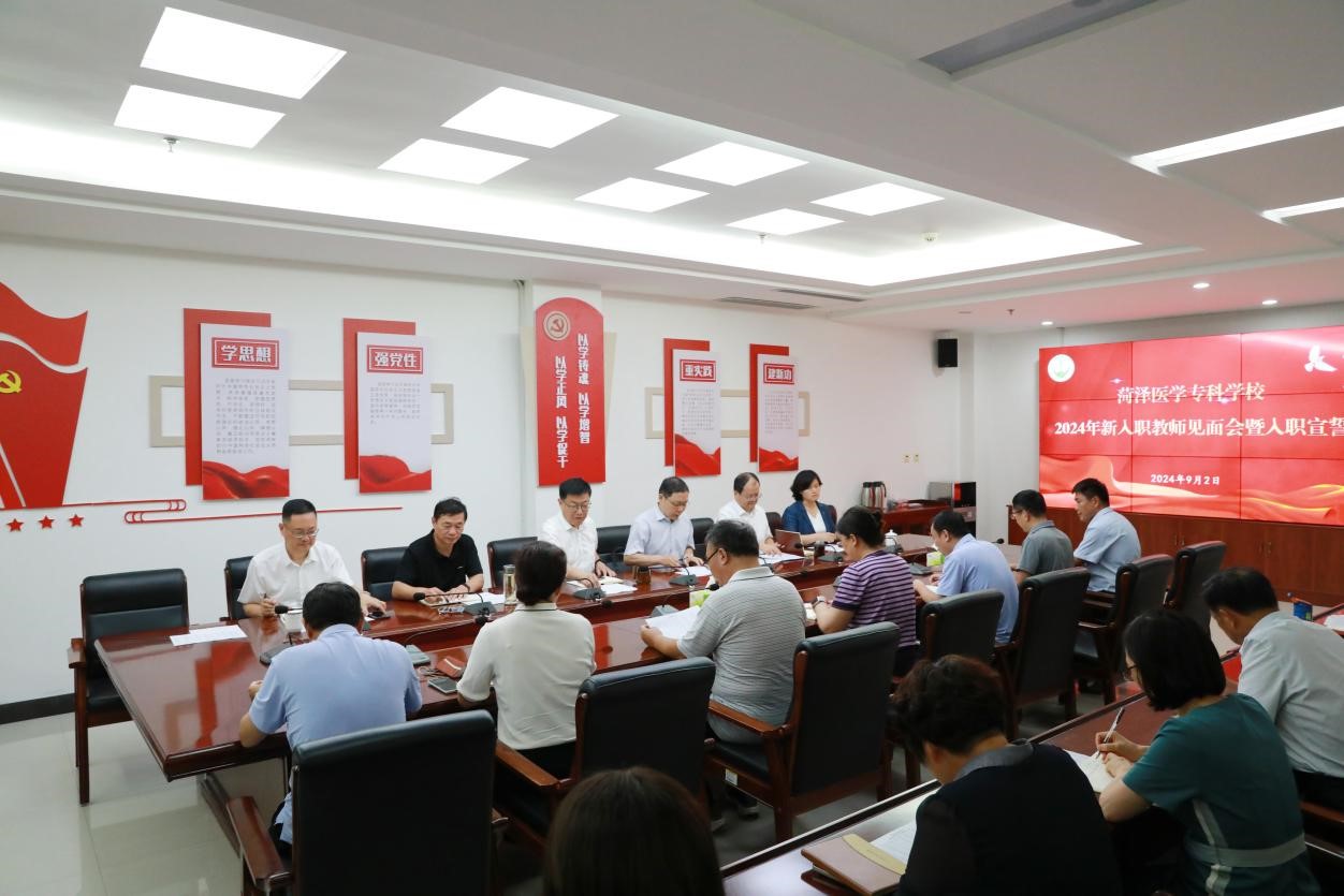 9月2日下午,我校在图书楼六楼第一会议室召开了新入职教师见面会。党委书记袁志勇,党委副书记、校长顾润国,党委副书记蒋继国,纪委书记高军,副校长郭树榜、代爱英以及相关二级部门负责人出席见面会。