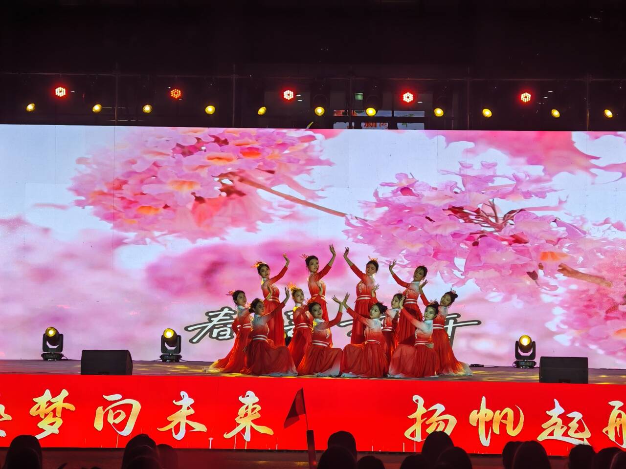 晚会紧紧围绕庆祝新中国成立75周年这一主题,把爱国主义教育内涵贯穿始终,引导广大同学传承红色基因、赓续红色血脉、厚植爱国情感。晚会分为“踔厉奋发 为梦前行”、“薪火相传 梦想起航”和“强国有我 筑梦未来”三个篇章,由20余名教师和来自7个系部200余名同学倾情演绎,通过歌曲、舞蹈、器乐演奏、情景剧等丰富多彩的艺术形式,为同学们呈上了一堂生动精彩的爱国主义教育课。舞蹈《春暖花开》用优美的舞姿将春天的美好演绎得淋漓尽致,器乐演奏《军港之夜》让心灵随海波荡漾。朗诵《梦想的摇篮·青春的风帆》、歌伴舞《第一天》和歌曲《我的未来式》,带领观众一起踏上这场关于梦想与未来的旅程。民族舞蹈《沁莲》尽显穿越时空的文化魅力。歌曲《如愿》《稻香》彰显青春活力,拉丁舞《舞动青春》和大艺团的《模特秀》将晚会推向高潮,赢得观众阵阵掌声。大合唱《红旗飘飘》、表演《护我国威》、舞蹈《授护·守护》、朗诵《我的南方和北方》和原创情景剧《下乡归来话成长》,不仅让观众领略到艺术的魅力,更在歌声和表演中感悟信仰的力量、激发爱国热情。