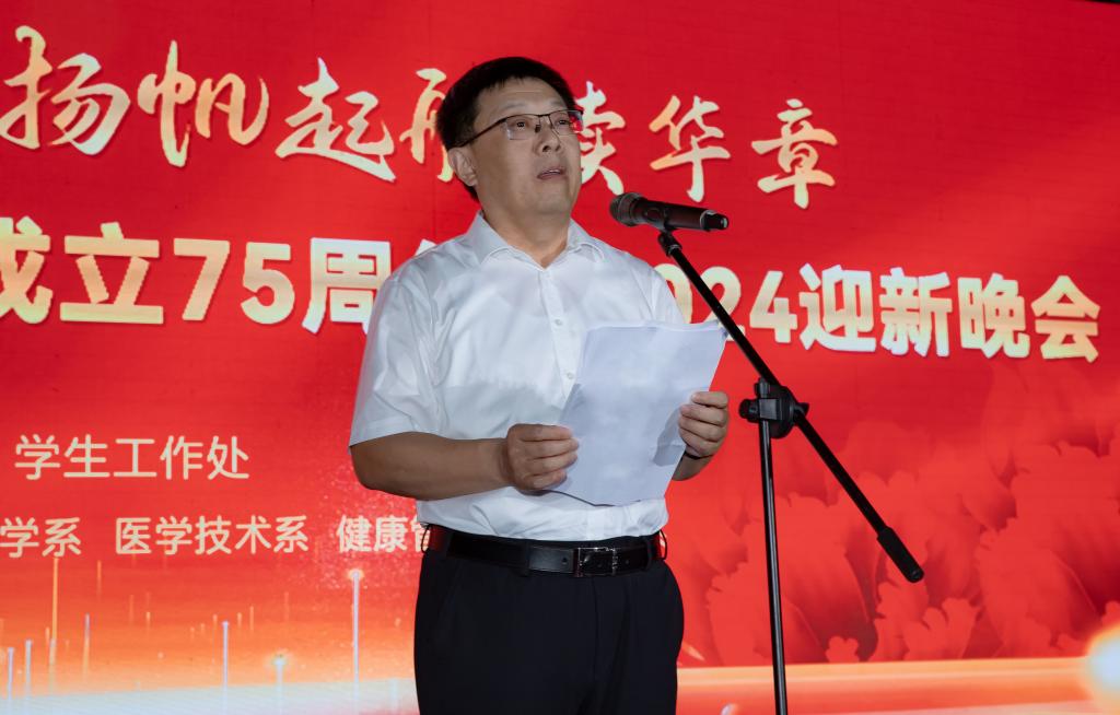 晚会伊始,学校党委书记袁志勇致辞,他代表学校向2024级新同学表示热烈欢迎,对全体演职人员和工作人员表示由衷感谢。他指出,我校始终紧紧围绕立德树人根本任务,努力培养具有高尚道德情操、强烈家国情怀、扎实学识根基的高素质医学人才,助力学生全面成长成才。希望同学们身处新时代、展望新征程,强化使命责任,做挺膺担当的奋斗者。