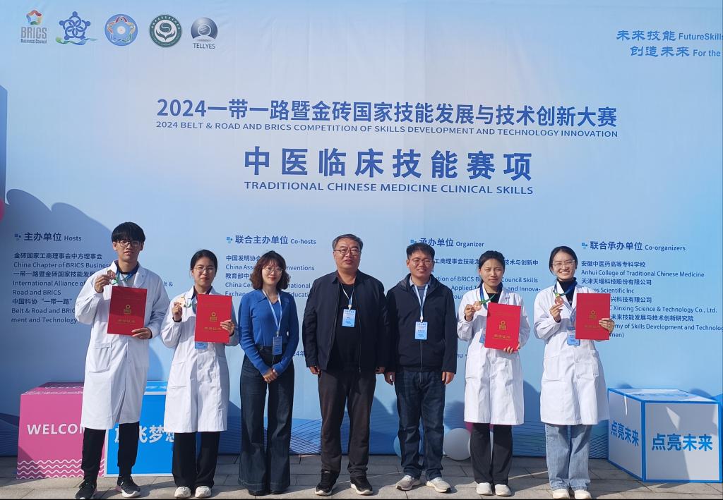 11月7日至10日,备受瞩目的2024“一带一路”暨金砖国家技能发展与技术创新大赛首届中医临床技能赛项圆满落幕。本次比赛共有来自18个省、自治区的37支院校队伍参加,我校选手在此次大赛中表现优异,由宋雨诺、杨心力、隋姗、任同(指导教师付晨瑜、丁琪、于冰冰、赵望森)组成的学校代表队在此次比赛中荣获三等奖,充分展现了我校师生的中医临床思维与操作技能水平。
