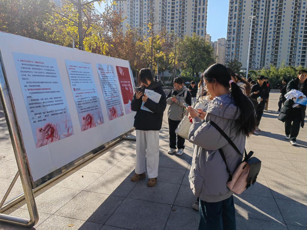 护理系学生志愿者在石泉广场通过摆放宣传展板、悬挂宣传横幅、开展艾滋病防治主题知识竞赛等形式,向大学生普及艾滋病防治知识,进一步增强青年学生的自我保护意识和能力。截至活动结束,共有约2000人次参与到知识竞赛的答题中。