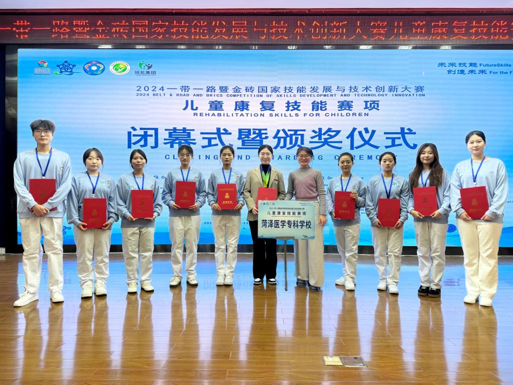 11月29日至12月1日,2024一带一路暨金砖国家技能发展与技术创新大赛儿童康复技能赛项总决赛在重庆圆满落幕。来自各省市47所高校的128名精英选手同台竞技,我校荣获最佳组织奖,康复治疗技术专业倪萍等6位同学斩获“金砖赛”儿童康复技能赛项金、银、铜奖大满贯。