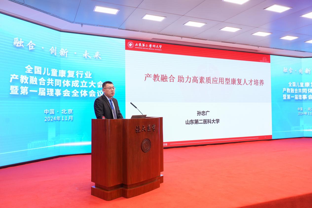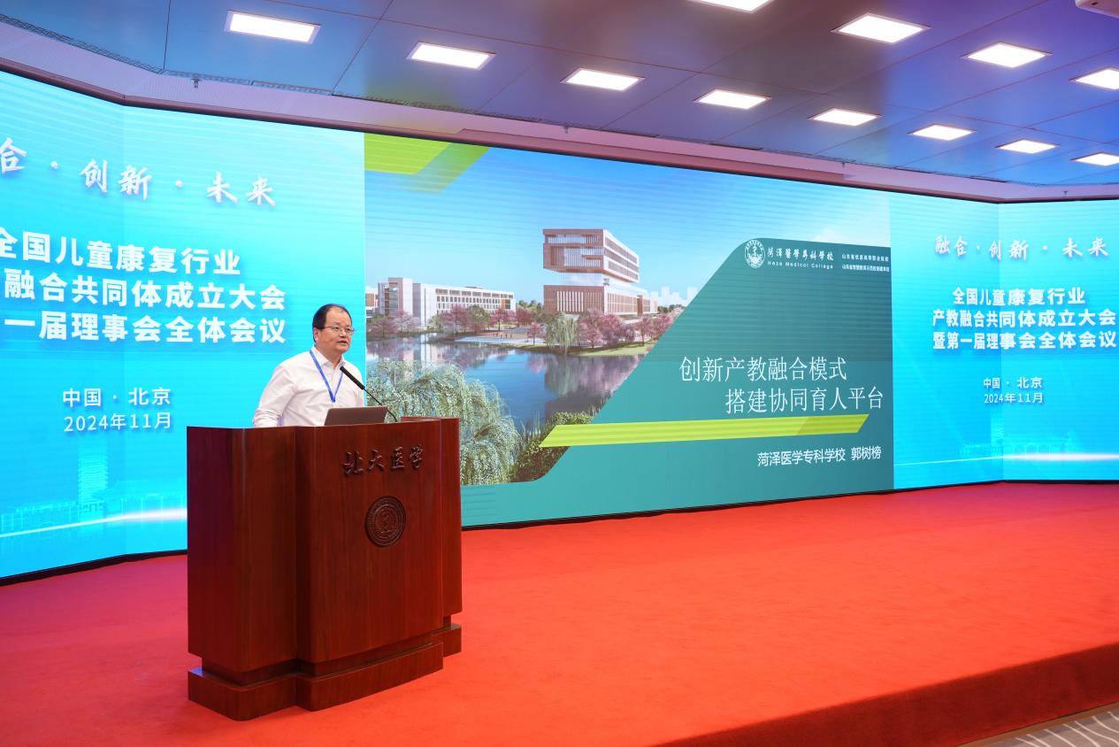 11月29日至30日,全国儿童康复行业产教融合共同体成立大会暨第一届理事会全体会议在北京大学医学部逸夫楼二楼报告厅盛大启幕。本次大会在全国卫生健康职业教育教学指导委员会、山东省教育厅、山东省卫健委指导下,由菏泽医学专科学校、北京北大医疗脑健康科技有限公司和山东第二医科大学牵头共同发起。共同体汇聚来自全国19个省、市、自治区128家单位的热情参与,本次大会吸引了86家单位、120余名代表共襄盛举,共同见证这一历史性时刻。