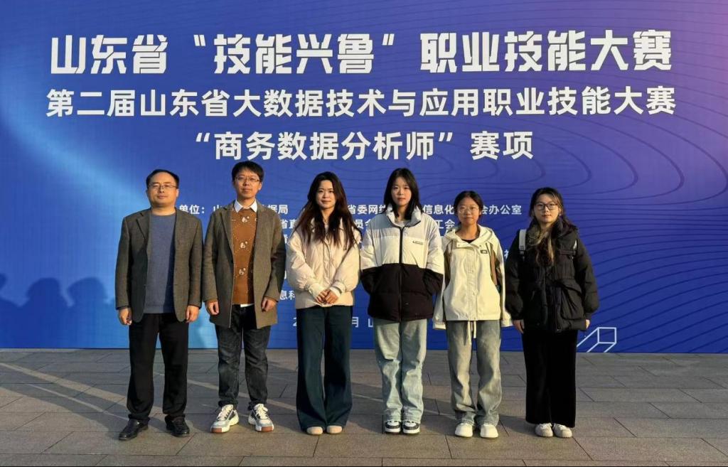 此次大赛由山东省大数据局联合省委网信办、省教育厅、省工业和信息化厅、省人力资源和社会保障厅等8家单位共同主办。参赛选手来自省内129家单位、91所院校,共1438名选手(其中职工组568人,学生组870人)同台竞技。比赛分设职工(教师)组和学生组,通过理论知识和实际操作两个环节的综合评估,我校师生凭借卓越的数据分析技能和创新应用能力,在众多参赛队伍中崭露头角。其中,董鹏老师荣获职工(教师)组一等奖,崔思颖、程玉卓、王一诺团队荣获学生组三等奖。