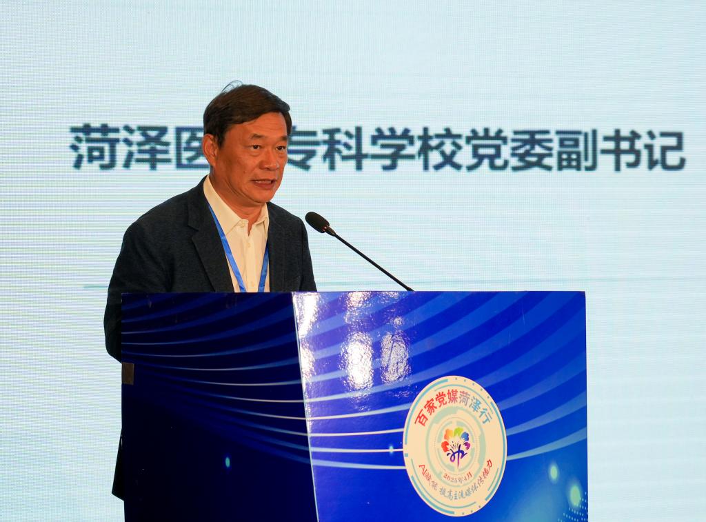 4月28日上午,由中国报业协会主办、山东省报业协会协办、菏泽日报社承办的“AI赋能,提高主流媒体传播力”暨“百家党媒菏泽行”活动在华美达酒店举行启动仪式,我校党委副书记蒋继国应邀作交流发言,以《AI 赋能,开启智慧教育与医疗新时代》为主题,介绍了学校在人工智能赋能教育教学改革的创新成果。