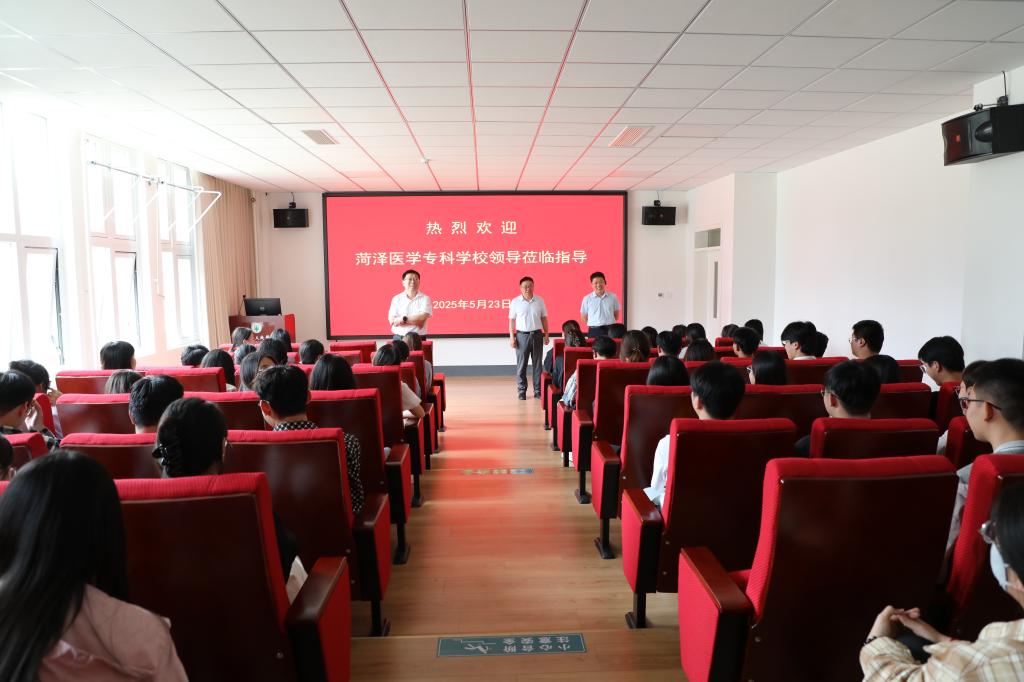 调研期间,袁志勇一行亲切看望了在医院临床见习的学生,并召开学生座谈会。在与学生交流时,他提出三点殷切期望:一要始终把安全放在首位,严格遵守医院和学校的各项规章制度,确保见习期间的人身安全和医疗安全;二要珍惜宝贵的临床学习机会,勤学善思,将理论知识与临床实践深度融合,练就过硬的专业本领;三要注重综合素质培养,恪守医德医风,以仁心仁术服务患者,充分展现菏医学子的良好精神风貌。