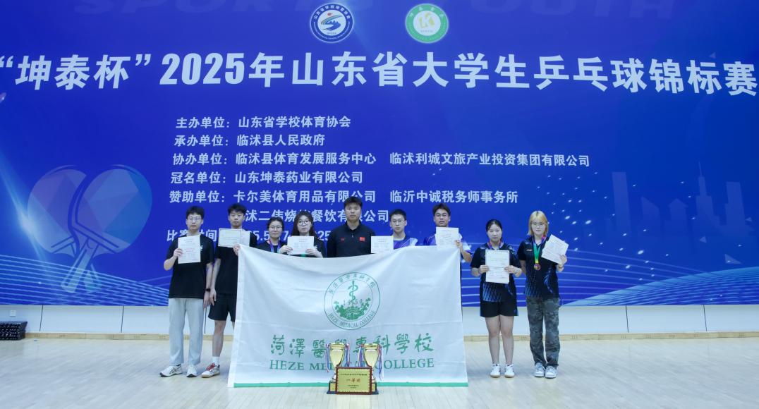 5月23日,由山东省学校体育协会主办、临沭县人民政府承办的2025年山东省大学生乒乓球锦标赛在临沭县体育馆圆满收官。本届赛事吸引了来自全省34所高校的320余名运动员同场竞技。我校乒乓球队凭借精湛技艺与昂扬斗志,在为期数日的激烈角逐中斩获佳绩。