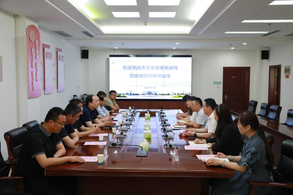 5月27日,荣成市卫生健康局党组成员、副局长、荣成市疾病预防控制局局长柴鹏一行14人赴我校招聘基层医疗服务人员。校党委委员、副校长齐云飞,校企合作与培训就业处处长王学贺,临床医学系党总支书记吴琪,中医药系党总支书记杨茜及校企合作与培训就业处相关人员参加座谈会。