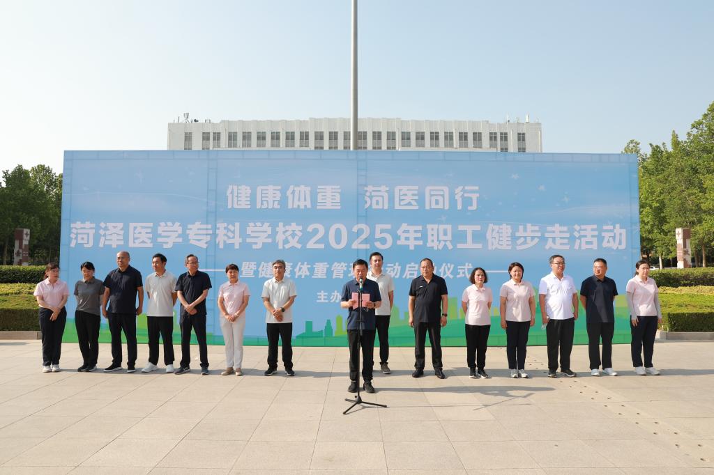 为扎实推进深入贯彻中央八项规定精神学习教育,持续营造风清气正、健康向上的校园氛围,6月12日下午,我校在石泉广场举行2025年职工健步走暨健康体重管理行动启动仪式,本次活动以“健康体重、菏医同行”为主题,校党委副书记、工会主席蒋继国,党委委员、副校长李铮莅临现场,与工会 600 余名教职工一同开启这场健康与活力之旅。