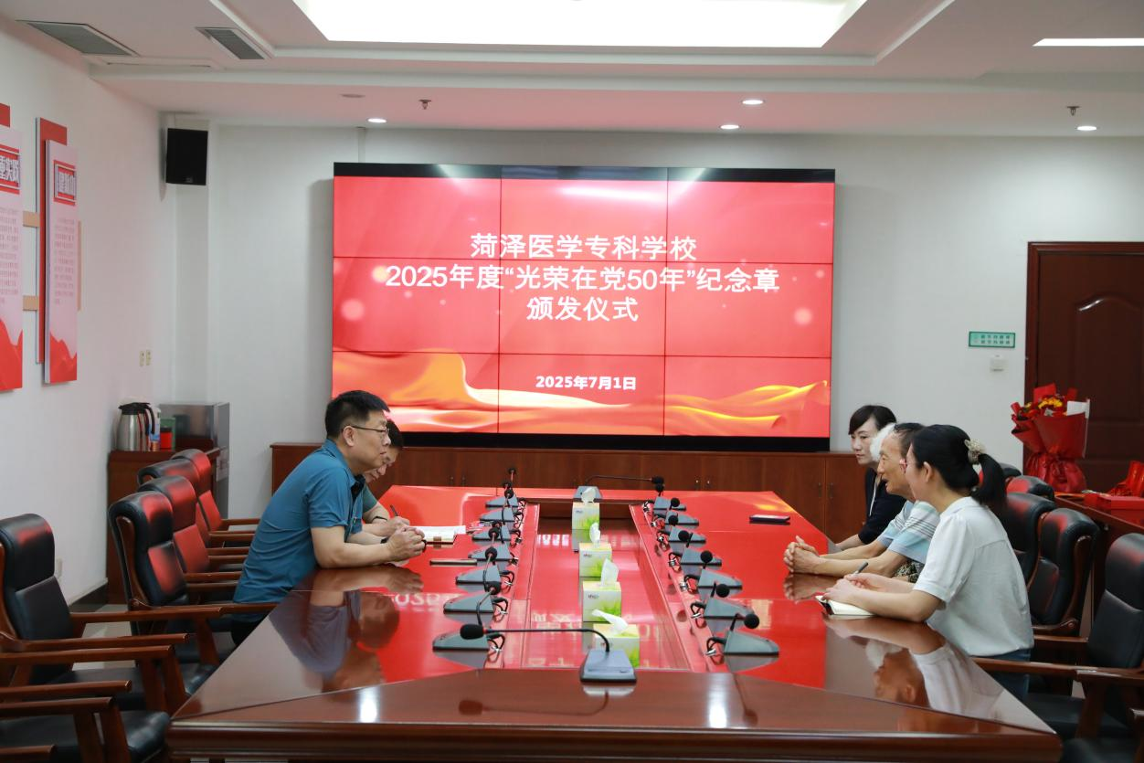 为落实中央关于做好“光荣在党50年”纪念章颁发工作有关部署,弘扬党的优良传统,鼓舞和激励广大党员干部牢记党员身份,坚守初心本色,7月1日上午,我校举行2025年度“光荣在党50年”纪念章颁发仪式。学校党委书记袁志勇出席并讲话,党委副书记蒋继国主持。获颁“光荣在党50年”纪念章老党员、组织部有关同志参加。