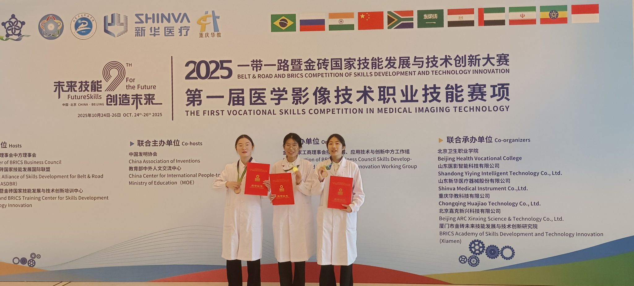 10月25日,第九届金砖国家技能发展与技术创新大赛——首届医学影像技术职业技能赛项决赛在北京举行。我校代表队凭借过硬的专业技能与出色的人工智能应用能力,从众多参赛队伍中脱颖而出。车昱乐同学勇夺超声检查技术赛项一等奖,傅馨颖和闫婧同学分别获得CT检查及诊断赛项和医学图像处理赛项三等奖,我校获得最佳组织奖。这一佳绩不仅是我校学子技艺精湛的体现,更是学校前瞻性推进数智化教学转型、培养医工融合型高技能人才的生动实践。