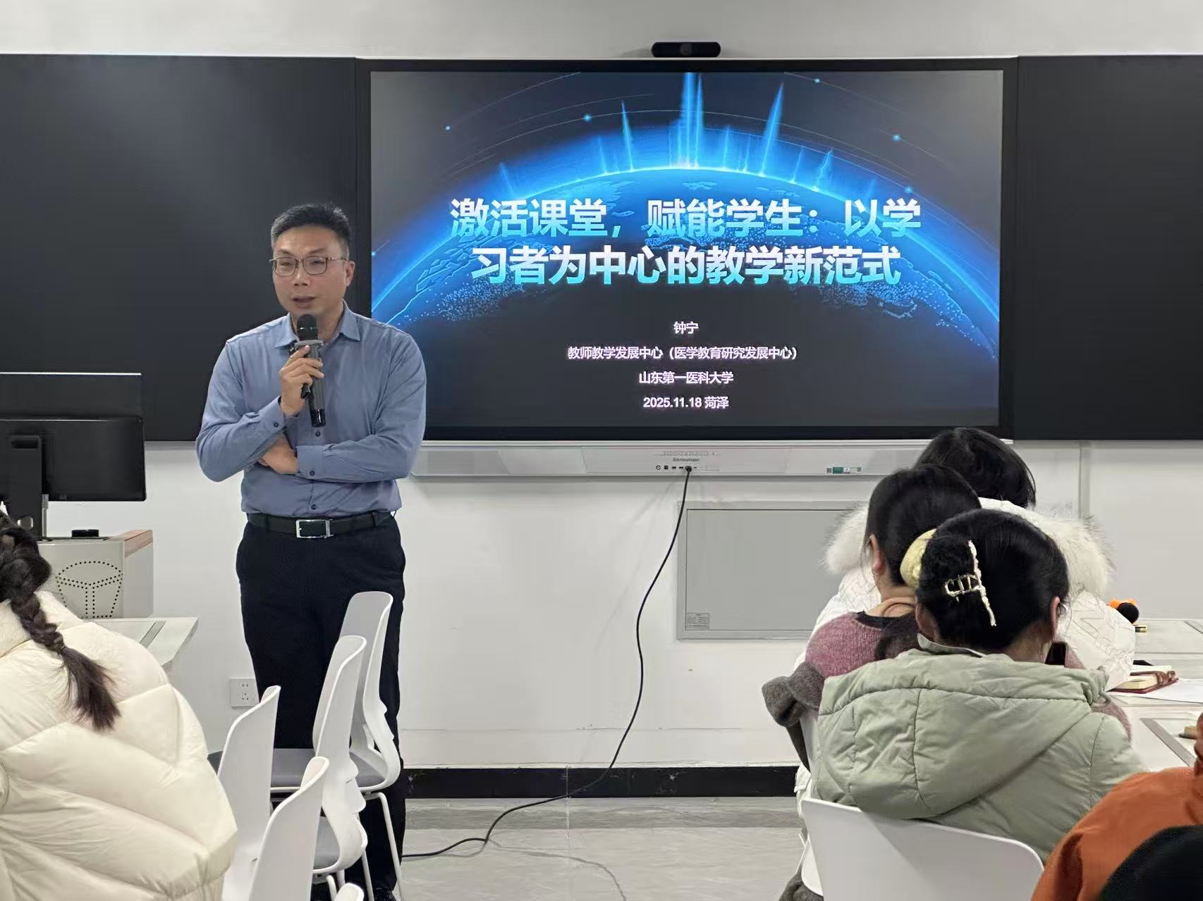 钟宁围绕“激活课堂 赋能学生:以学习者为中心的教学新范式”主题,从传统课堂的痛点切入,系统阐释了“以学习者为中心”的核心内涵。他指出,这一教学范式并非简单调整教学形式,而是要从“教师主导”转向 “学生主体”,从“知识灌输”转向“能力生成”,从“统一要求”转向“个性适配”。讲座中,钟宁结合多学科教学案例,生动展示了如何通过教学设计让课堂“活”起来、让学生“动”起来,真正实现从“教会”到“学会”再到“会学”的转变。
