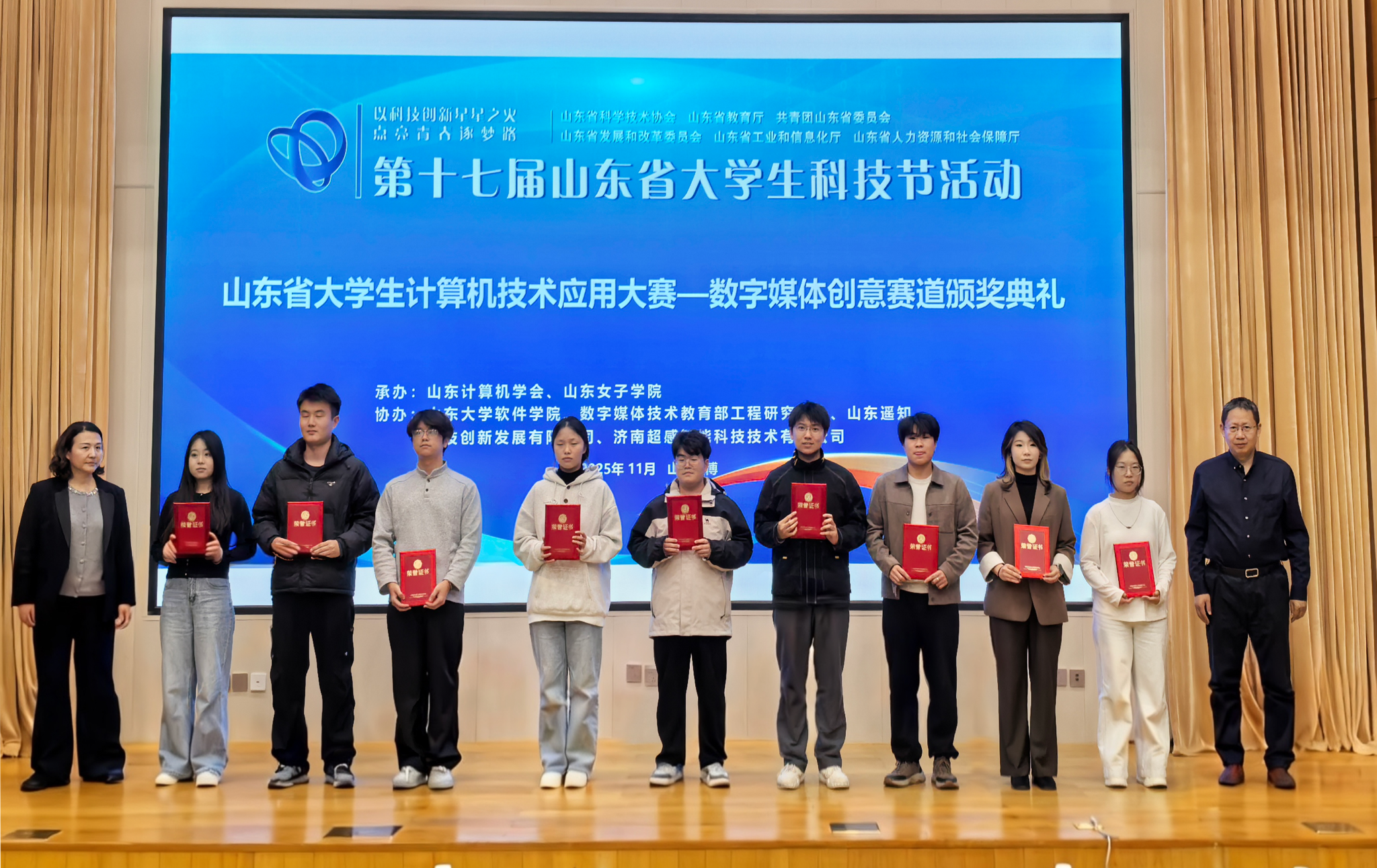 该项赛事是面向山东省各高校在校大学生的数字媒体作品创意大赛,吸引了全省40多个院校的300多个团队报名参与。经过层层选拔,共选出山东大学等50余支队伍入围决赛。自备赛以来,学校予以高度重视,指导教师认真履行职责、悉心辅导,团队成员勤奋学习、刻苦钻研,在比赛现场充分展现出扎实的程序开发基础、丰富的创新创业意识以及出色的现场表现能力。
