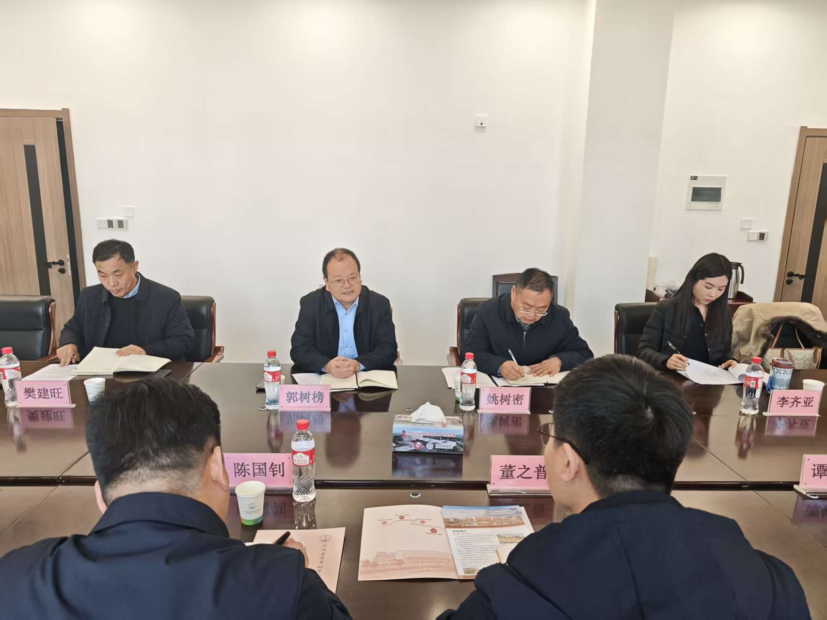 郭树榜代表学校对陈国钊、董之普等一行的到来表示热烈欢迎,并介绍了我校的办学概况、人才培养以及在思政教育体系建设等方面的优势与特色。姚树密就马克思主义学院近几年取得的各项成绩做了介绍,樊建旺就学校开展大中小学思政课一体化建设情况进行了阐述。