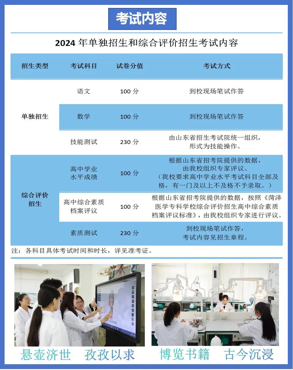 菏泽医学专科学校2024年单独招生与综合评价招生招生简章
