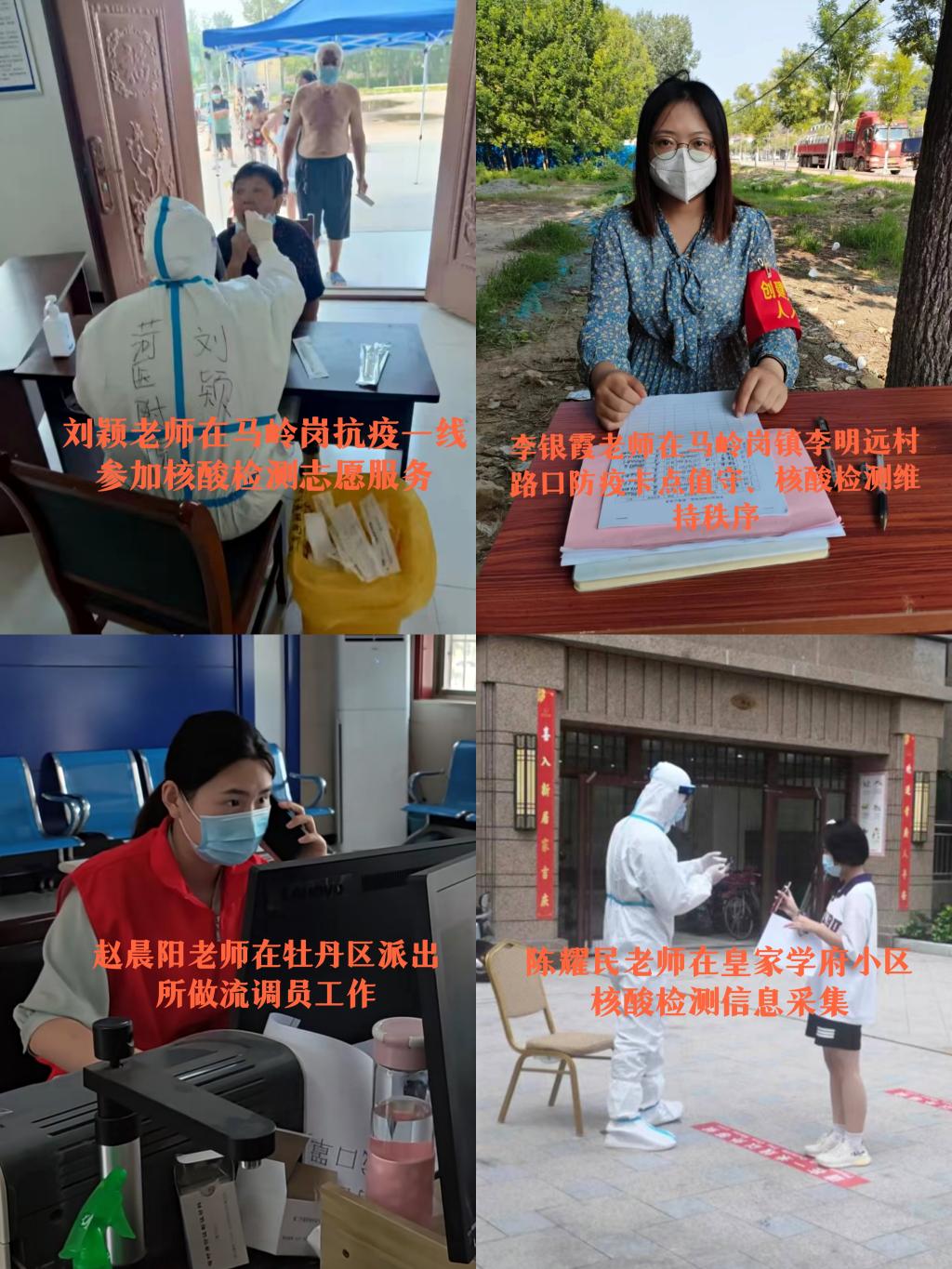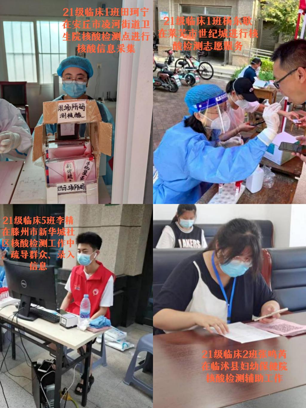 三尺讲台育桃李,抗疫一线勇担当。本轮疫情发生后,临床医学系师生志愿者40余人主动请缨参与到社区抗疫志愿服务活动中,他们战高温斗酷暑,活跃在菏泽市及周边社区、小区的各个角落,核酸检测、秩序维持、引导解疑、信息录入、流调回访,完美诠释了菏医人的责任与担当。