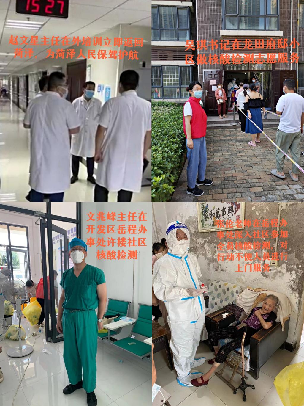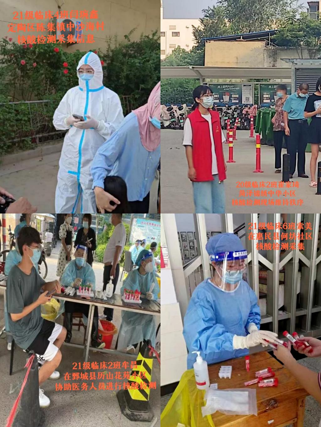 7月25日以来,菏泽市全面启动社区联防联控和大规模核酸检测工作。面对疫情防控新态势,我校临床医学系师生不忘医者初心,身披白衣战甲,闻令而动、主动请缨、冲锋在前,投身抗疫志愿者服务工作,让“志愿红”闪亮在抗疫最前沿。