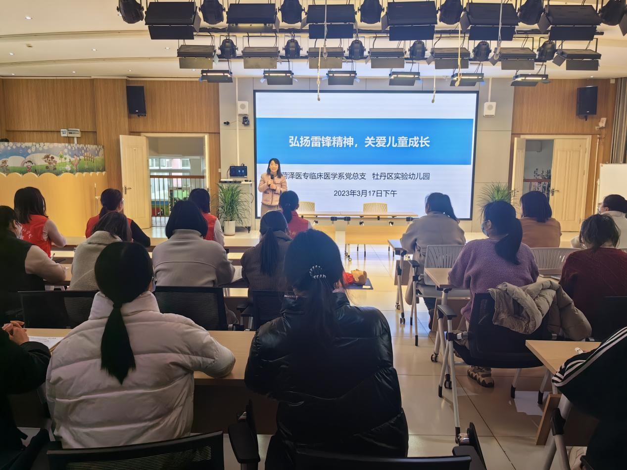 3月17日下午,临床医学系党总支及梦马志愿者服务队赴牡丹区实验幼儿园,开展以“弘扬雷锋精神,关爱儿童成长”为主题的健康宣教活动,幼儿园60余名教工参加了活动。