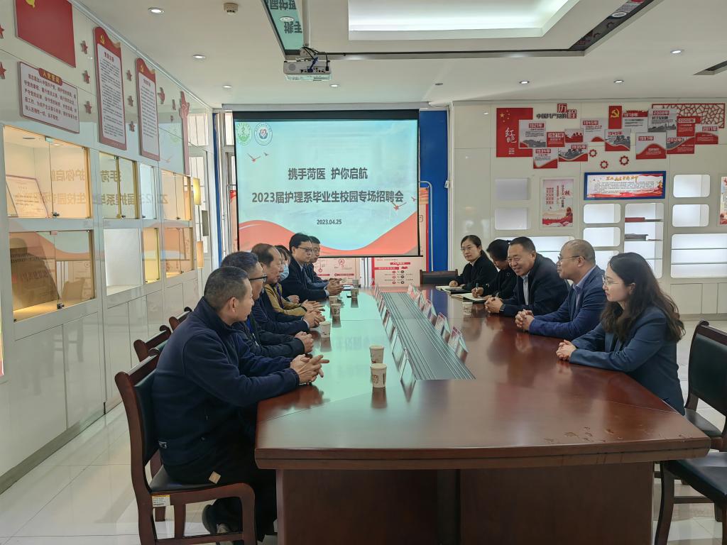 为深入开展学习贯彻习近平新时代中国特色社会主义思想主题教育,扎实开展“访企拓岗促就业”行动,进一步拓宽护理系毕业生的就业渠道,推动主题教育走深走实,我校护理系于4月25日上午在护理楼307举办访企拓岗座谈会。学校党委委员、副校长张传宝、护理系党总支书记刘明哲、主任马国平、副主任刘春霞、副书记杨珂与青岛黄岛灵山湾医院、烟台桃村中心医院、聊城惠康慢性病医院、费县博爱医院、济宁任城瑞康医院、沂南县心理康复医院、曹县大集镇卫生院等医院负责同志参加了座谈交流。