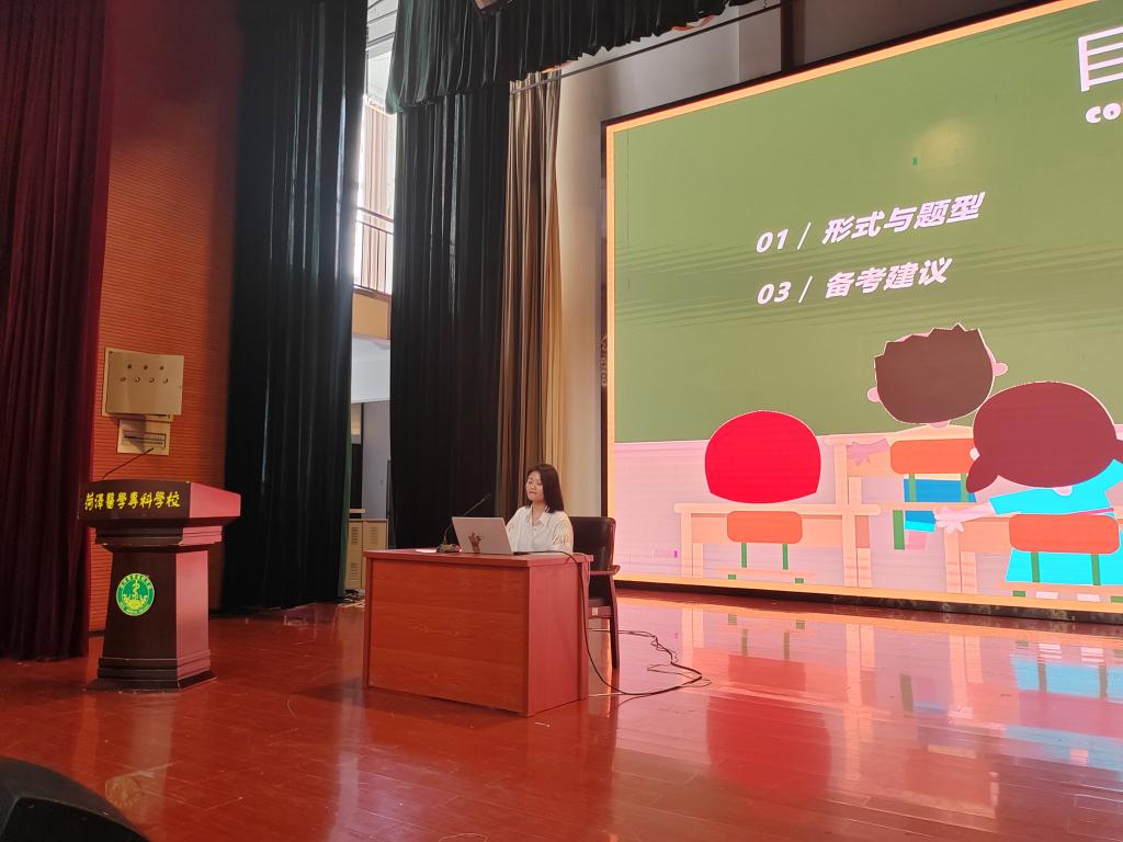 为帮助我校学生进行合理的学业规划,为学生的学业提升提供助力,6月1日下午,公共教学部在学术报告厅组织召开专升本学科学习讲座。讲座由公共教学部党总支副书记孙蕊主持,校党委副书记蒋继国出席会议并致辞,公共教学部副主任任俊莲、专升本考试学科各学科带头人及我校部分学生代表参加会议。