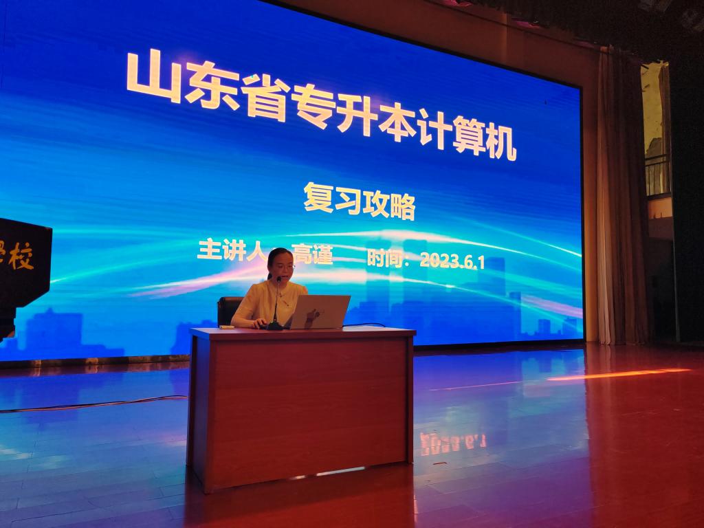 计算机、大学语文、高等数学和英语学科带头人高谨、贾先奎、孔胶胶、杨馨4位老师先后发言。他们基于近年来山东省专升本考试要求和历年试题结构与题型难度,分别对学科的学习方法及备考策略做出详细讲解,并帮助学生制定了切实可行的学习规划。