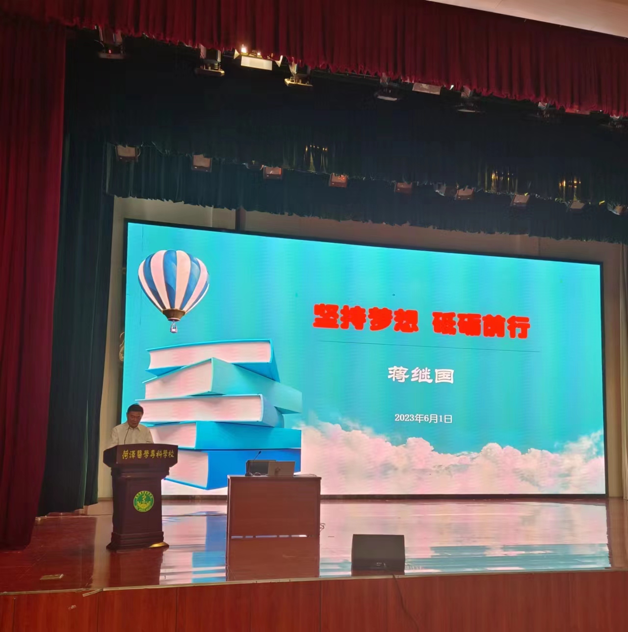 蒋继国首先分析了目前职业教育的发展现状与前景,勉励同学们合理规划学业发展,抓住机会,砥砺前行,以梦想为底色,以奋斗为画笔,给学校和国家交一份合格的答卷,不负青春韶华。