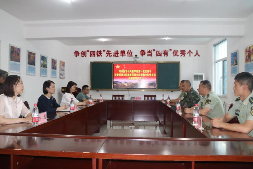 为深入贯彻习近平总书记关于双拥工作重要论述,进一步弘扬双拥工作优良传统,营造浓厚的双拥氛围,巩固发展新时代军政军民团结,密切军地交往交流,增进军民鱼水情谊,5月21日,我校公共教学部第一党支部与市勤务保障大队警勤中队党支部联合开展党建结对共建活动。