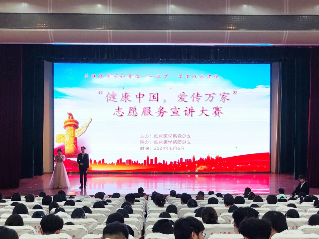 为进一步发挥志愿服务实践育人“大思政课”的引领带动作用,推进学生社区建设,6月6日下午,临床医学系在学术报告厅举办志愿服务宣讲大赛决赛。校党委委员、副校长齐云飞,学生工作处处长孙战、各系部党总支书记、各志愿服务项目指导教师莅临现场并担任评委。