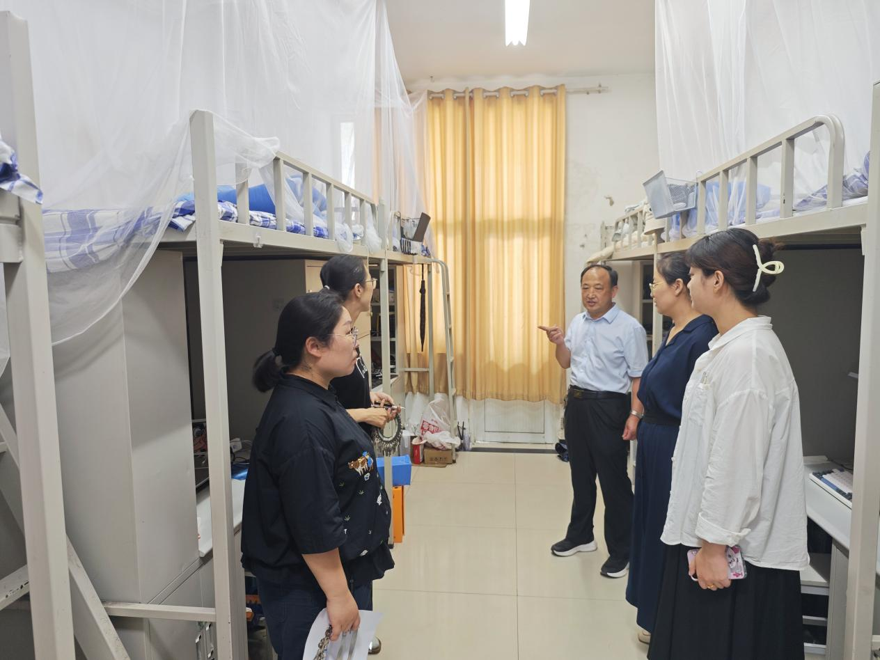 为加强学生宿舍安全管理,进一步了解学生的生活情况,切实推进向阳花开“一站式”社区建设,6月12日上午,医学技术系党总支书记牛家峰、副书记牟翠荣及辅导员深入学生宿舍,开展宿舍安全卫生检查。