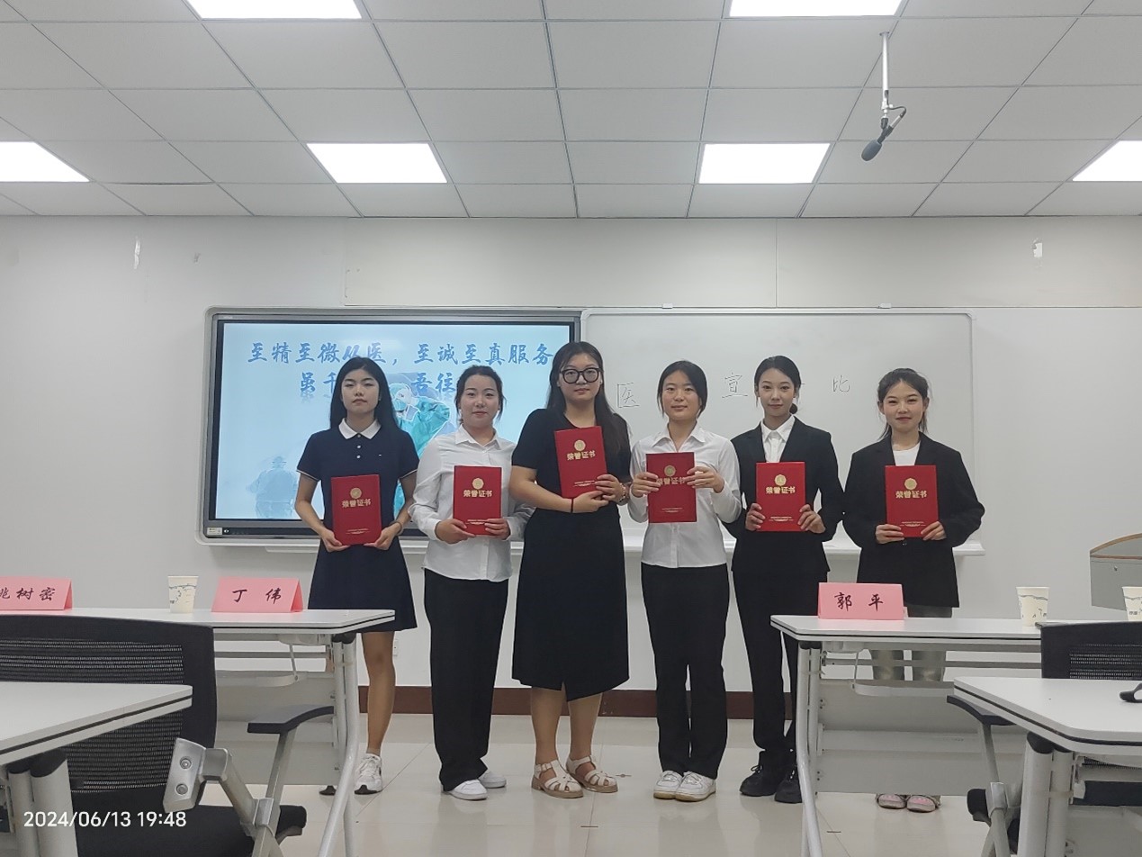 经过初赛、复赛的激烈角逐,最终共有六名选手脱颖而出。本次比赛评选出一等奖一名(2023级预防2班张紫怡),二等奖两名(2023级检验一班王梓涵、2023级检验一班程思睿),三等奖三名(2023级检验1班张硕、2023级检验2班候博钰、2023级检验4班王琪)。比赛结束后,评委分别为获奖选手颁奖,并合影留念。姚树密做总结发言,他高度赞誉了选手们展现出了当代大学生积极向上的精神风貌,并对选手们未来的职业道路提出了要求:既要重视医技学习,更要做一名医德高尚的医务工作者。