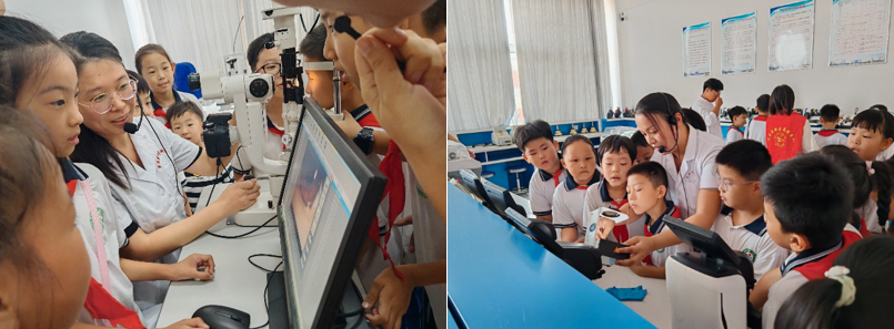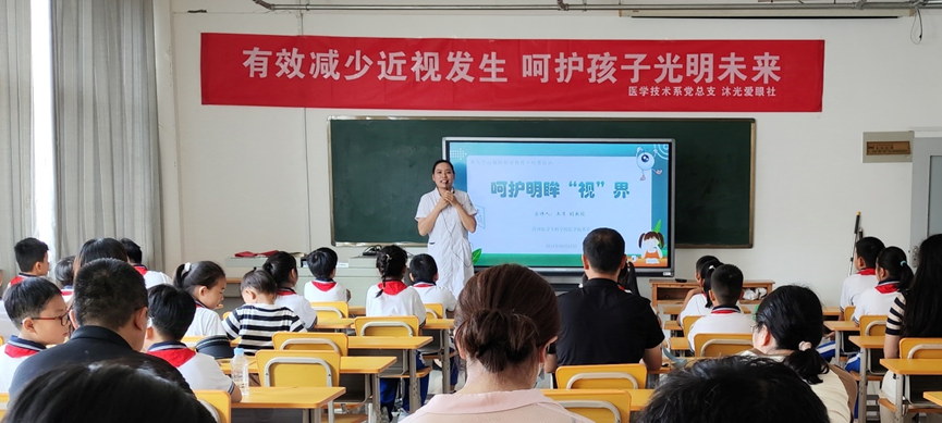 近日,我校医学技术系眼视光技术专业师生以“有效减少近视发生 呵护孩子光明未来”为主题,开展第9个全国近视防控宣传月活动。9月7日,来自菏泽市第一实验小学育才路小区三年级的小学生走进眼视光技术实训中心,开始精彩的眼健康科普之旅。