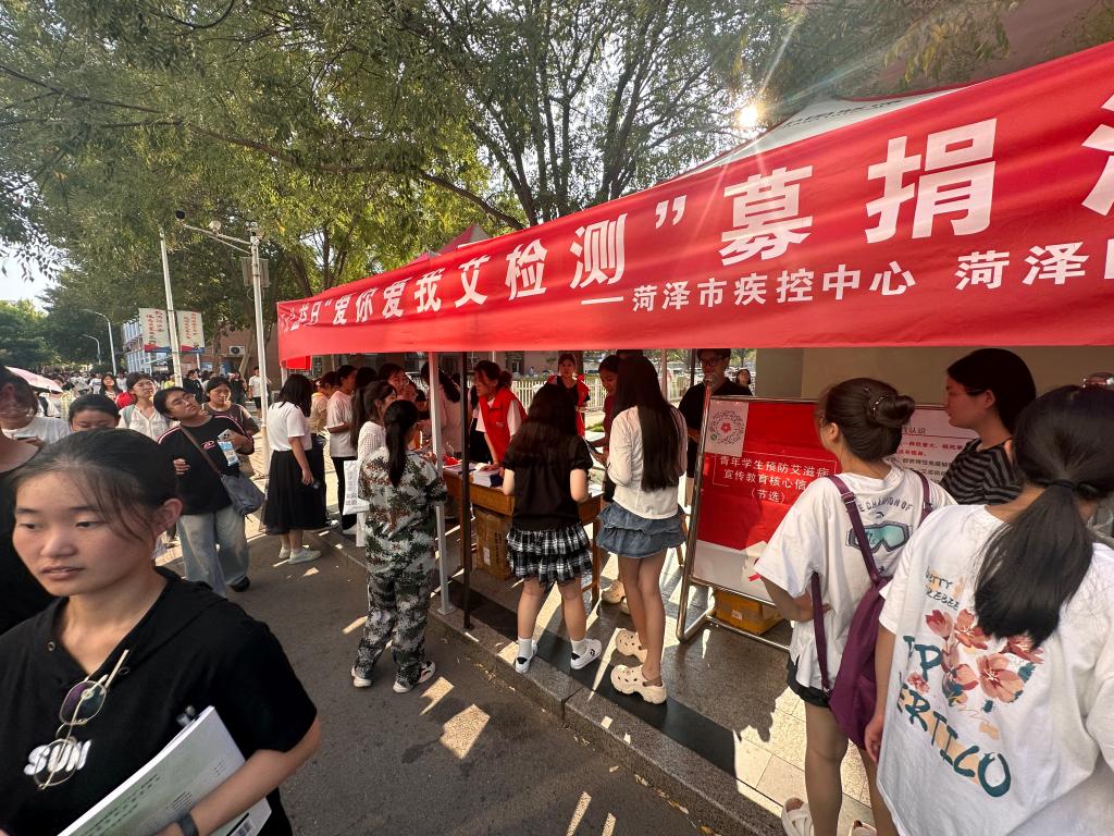 9月7日至9日,受菏泽市疾病预防控制中心、菏泽市性病艾滋病防治协会委托,护理系天使筑梦志愿服务队在校内举办“99公益日‘爱你爱我艾检测’众筹活动”。