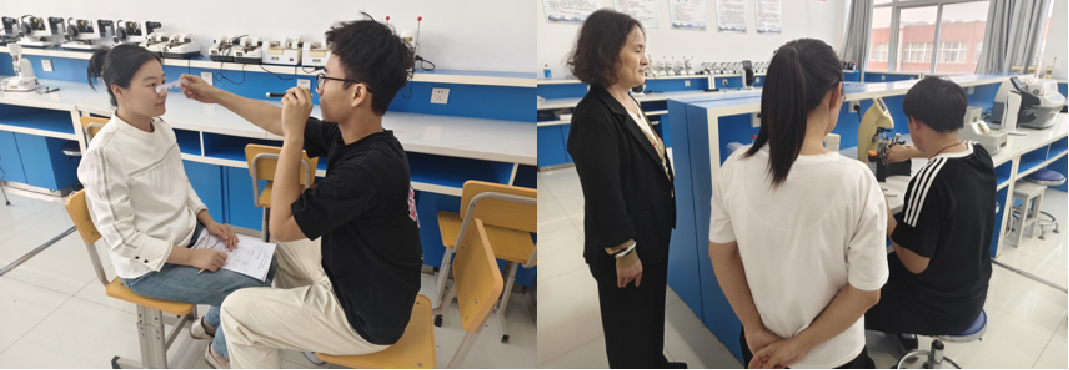 参照全国和山东省职业技能验光与配镜大赛的考核标准,眼视光技术专业建设了技能大赛题库,模拟裁判组抽取模拟比赛的题目、选手抽取考号和比赛轮次等流程,理论考试结束后,选手随机抽取题目进行技能实操的考核。技能模拟考试要求选手具备独立完成项目所需的实操技能,并在规定时间内完成相关任务。三位裁判根据实操考核标准进行综合评定,取平均分值作为选手的最终成绩。