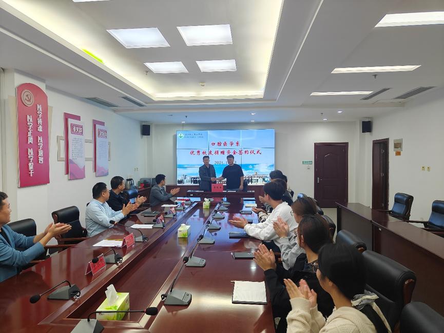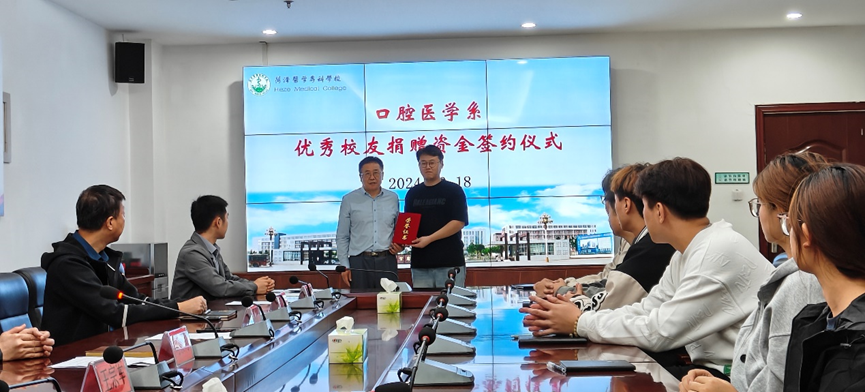 10月18日,口腔医学系举行校友捐赠资金签约仪式。校党委委员、副校长齐云飞,学生工作处,校企合作与培训就业处,2014级校友赵佩运,口腔医学系党总支书记和辅导员及学生代表出席捐赠仪式。