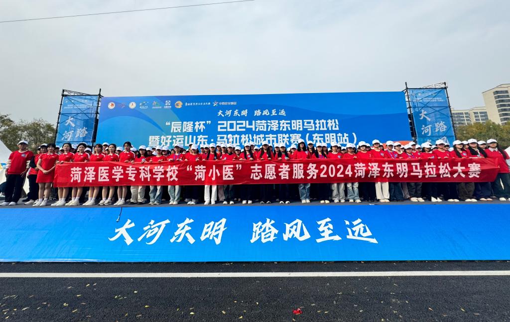 11月3日,“辰隆杯”2024菏泽东明马拉松暨好运山东·马拉松城市联赛(东明站)在东明体育公园鸣枪开跑。我校共选拔200名“菏小医”青年志愿者为大赛提供志愿服务。赛事期间,志愿者以最饱满的热情投入工作,成为这场赛事中亮丽的风景线。