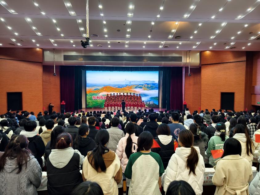 演出在雄浑有力的合唱《强军战歌》中拉开帷幕,同学们歌声嘹亮,唱出了新时代青年的壮志豪情与保家卫国的决心。宣讲《红色浪潮 觉醒中国》带领观众穿越时空,回顾了那段波澜壮阔的历史岁月,展现了先辈们为民族觉醒而不懈奋斗的伟大精神。光影剧《党的光辉历程》以独特的艺术形式,生动地再现了党的光辉足迹,让师生们深刻感受到党的伟大与光荣。