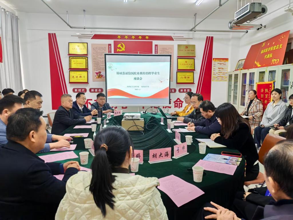 为促进2025届毕业生实现更加充分、高质量的就业目标, 4月1日,临床医学系在3号实验楼5403室举办访企拓岗暨院长进校园交流座谈会。会议特别邀请成武县人民医院、兰陵经济开发区医院、曲阜市精神卫生中心、聊城市东昌府区广平中心卫生院等11家医疗机构的院长及副院长出席。我校党委副书记蒋继国、临床医学系副主任文兆峰、辅导员老师以及2025届部分毕业生代表共同参与了此次座谈。会议由临床医学系党总支书记吴琪主持。