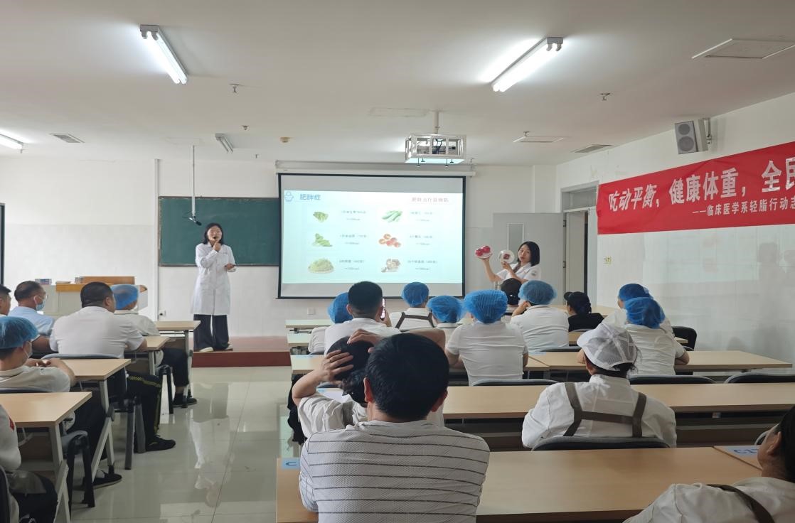 为深入贯彻落实 “健康中国” 战略,积极响应 2025 年全民营养周 “合理膳食 食养是良医” 主题号召,5月14日,我校临床医学系轻脂行动志愿服务队,依托临床医学专业背景,将专业的营养知识转化为通俗易懂的生活指南,分别面向餐厅职工和本校学生,开展全面生动的肥胖和体重管理专题宣讲活动,为师生健康保驾护航。