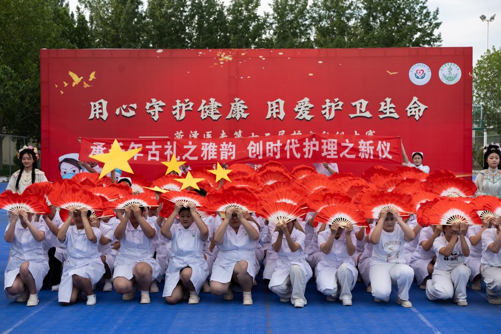 5月15日下午,我校第十二届护士礼仪大赛在学校篮球场隆重举行,学生工作处处长孙战,团委书记于淼以及各党总支书记出席本次比赛并担任评委,1000余名师生现场观看了比赛。本次比赛作为护理技能提升月系列活动之一,以“用心守护健康,用爱护卫生命”为主题,通过礼仪展示、创意表演等环节,全方位展现了护理学子的专业素养与人文精神。来自护理系的11支队伍参加了比赛,参赛学生达600余名。