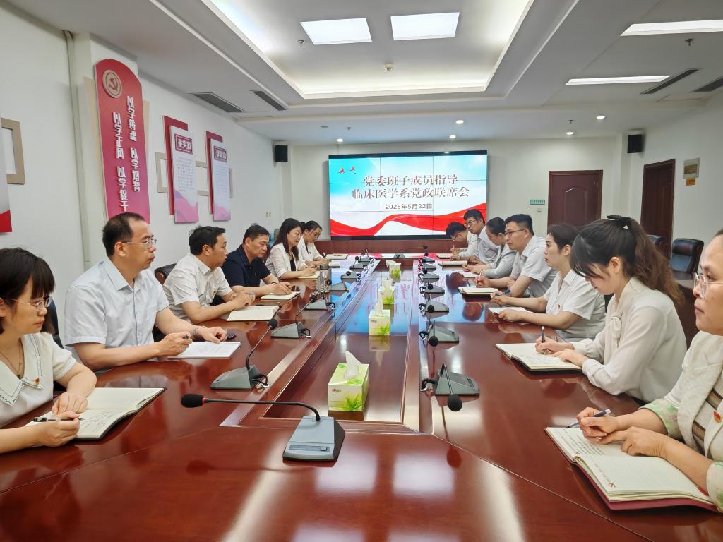 5月22日,学校党委副书记蒋继国列席临床医学系党政联席会,对系部议事决策和重点工作推进进行指导。会议由临床医学系党总支书记吴琪主持,系部党政负责人、系办公室主任、各教研室主任、辅导员代表参会。