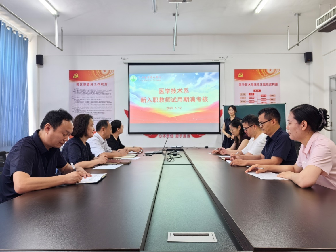 为贯彻落实习近平总书记关于新时代人才工作的新理念新战略新举措,进一步促进新进教师专业成长,6月12日上午,医学技术系圆满完成2024年新入职教师试用期满考核工作,医学技术系党总支书记牛家峰、主任戴馨、各教研室及实验室负责人参加考核,考核工作由戴馨主持。