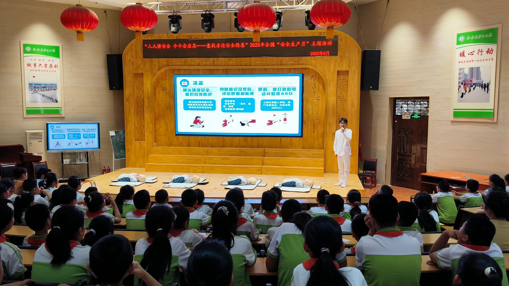 为强化暑期安全保障,增强青少年防溺水安全意识与自救急救能力,6月16日,护理系党总支联合护理系天使筑梦志愿服务队走进牡丹区第五小学开展 2025年“全国安全生产月”主题活动,普及防溺水知识并开展心肺复苏技能培训。