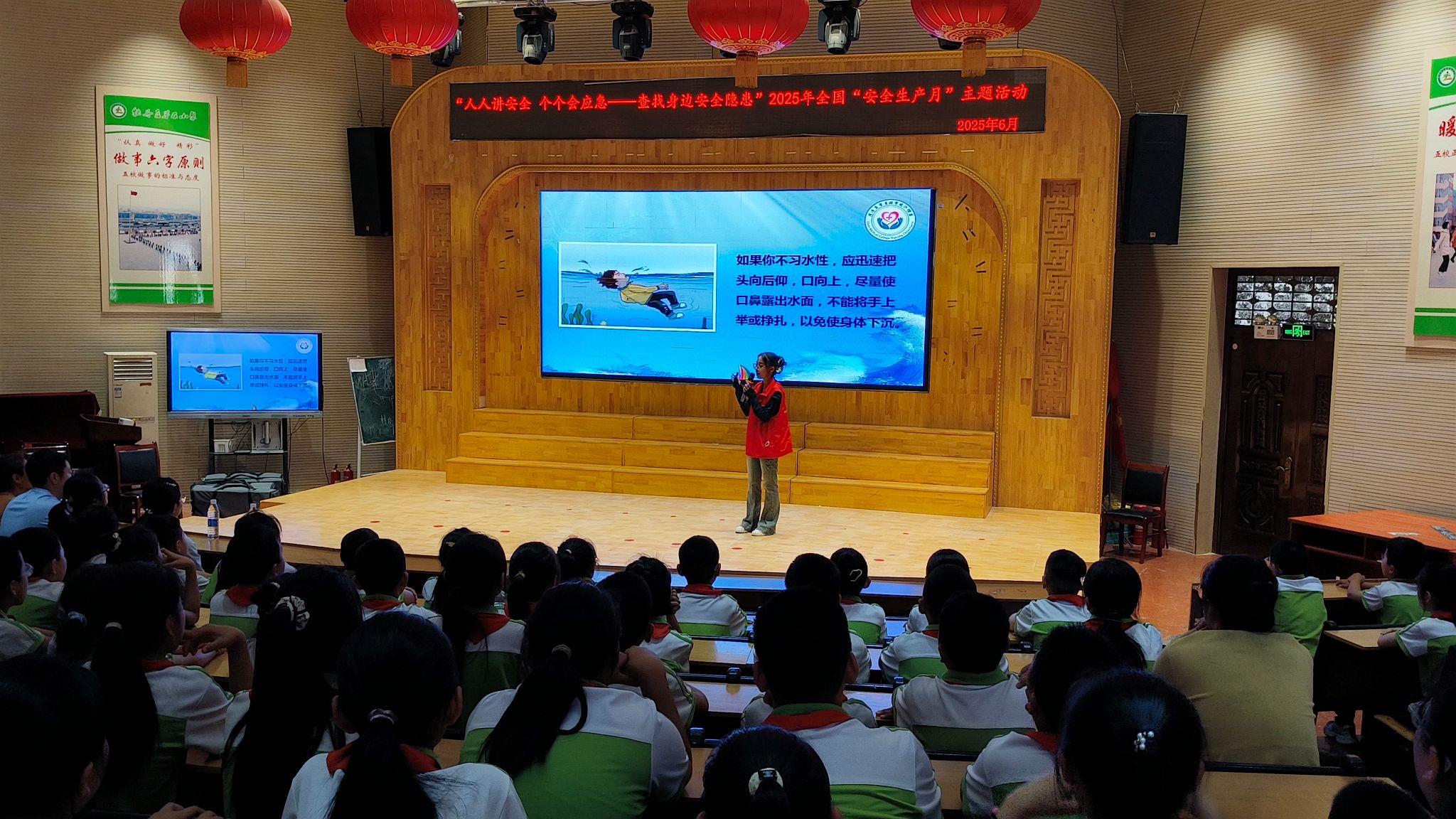 活动伊始,宣讲员借助生动形象的图片、有趣的互动问答以及真实鲜活的案例,深入浅出地剖析了溺水事故的突发性和严重危害,让同学们深刻认识到溺水的可怕。在讲解过程中,志愿者着重强调了“远离危险水域”“遇险保持冷静”“科学呼救自救”三大关键原则,并现场演示了在水中的实用自救措施,让同学们对溺水自救有了初步的认识。