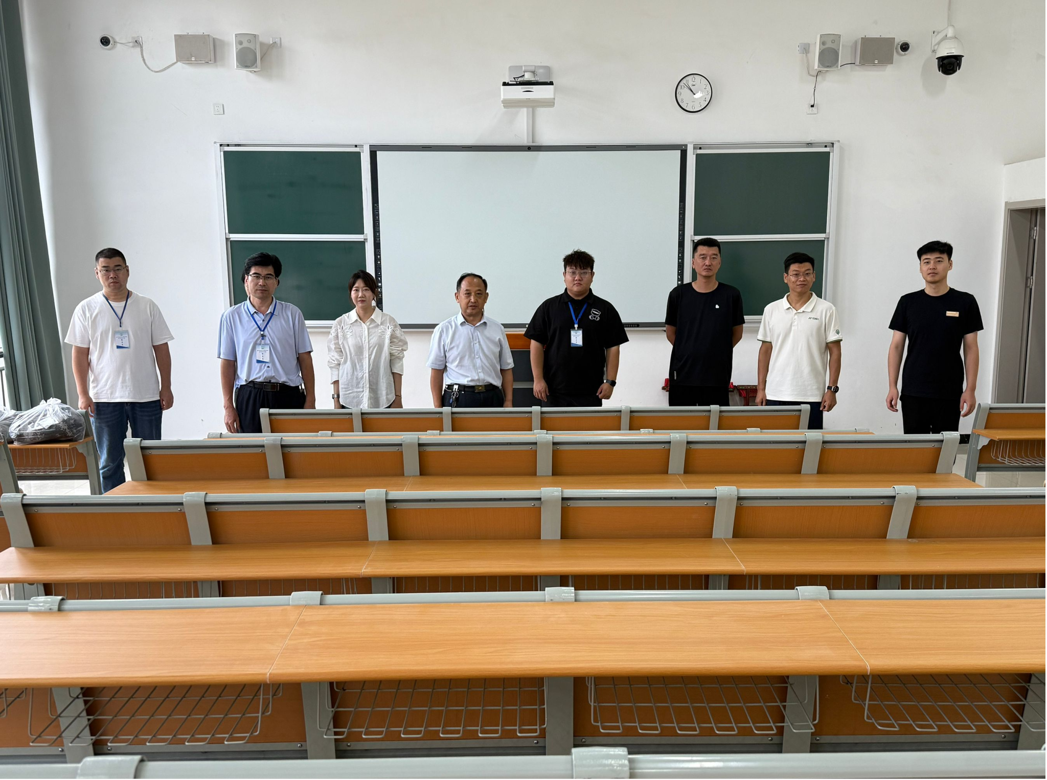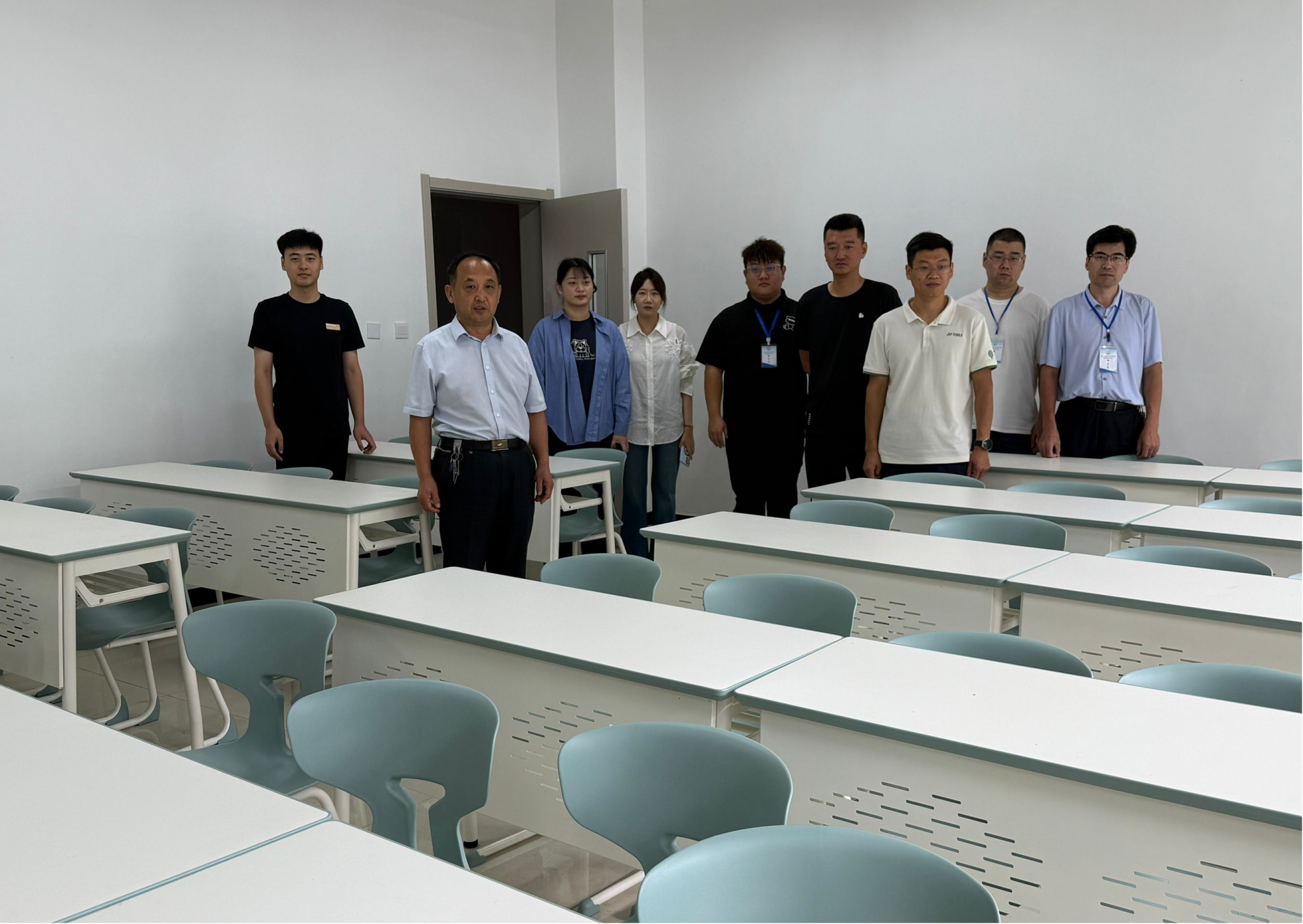 随后,牛家峰带领2025级辅导员来到新生教室,着重查看教学设备与桌椅是否存在安全隐患,课桌教具摆放是否规范整齐,及公共区域卫生情况。