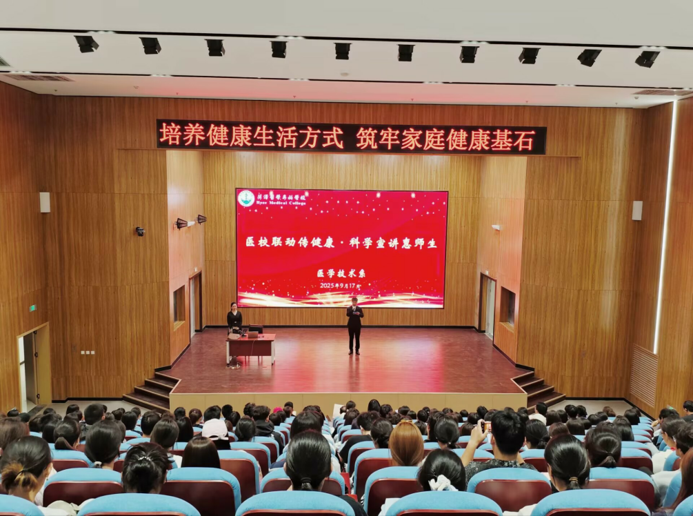 为培养大学生科学认知健康、自主管理健康能力,提升志愿者医学科普宣讲能力,9月17日下午,医学技术系在师生活动中心举办健康知识科普宣讲活动,通过“医校联动”的创新模式,为师生带来一场专业、实用的健康知识盛宴。山东省立医院菏泽医院公共卫生科科长杨国强、山东省立医院菏泽医院皮肤科主任、医学博士、硕士生导师赵莹,医学技术系党总支书记牛家峰以及师生代表参加活动。