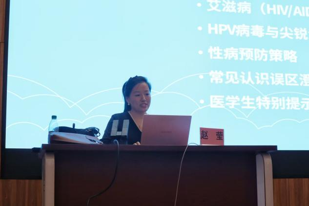 活动过程中,赵莹博士作为主讲嘉宾,围绕着性病概况、艾滋梅毒知识、HPV关联疾病等内容,结合临床病例开展专业宣讲。整个会场秩序井然,赵博士的讲解生动清晰,同学们静心聆听,深入思考,将健康的理念内化于心,外化于行。